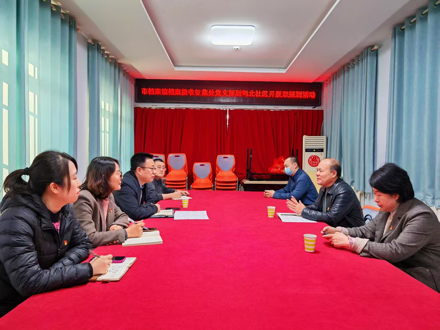 12月24日,市档案馆档案接收征集处党支部到历下区甸北社区开展“双报到”活动。围绕党建和业务相融合,双方进行了深入的座谈交流。市档案馆档案接收征集处确定在甸北社区试点开展档案征集工作,并为社区明确了社区档案室档案征集范围;市、区档案馆还将联合指导社区收集整理档案资料,着力建设高质量社区档案室。市档案馆副馆长、档案接收征集处党支部书记徐晓雷同志,档案接收征集处党支部、甸柳新村街道办事处和甸北社区有关同志参加活动。