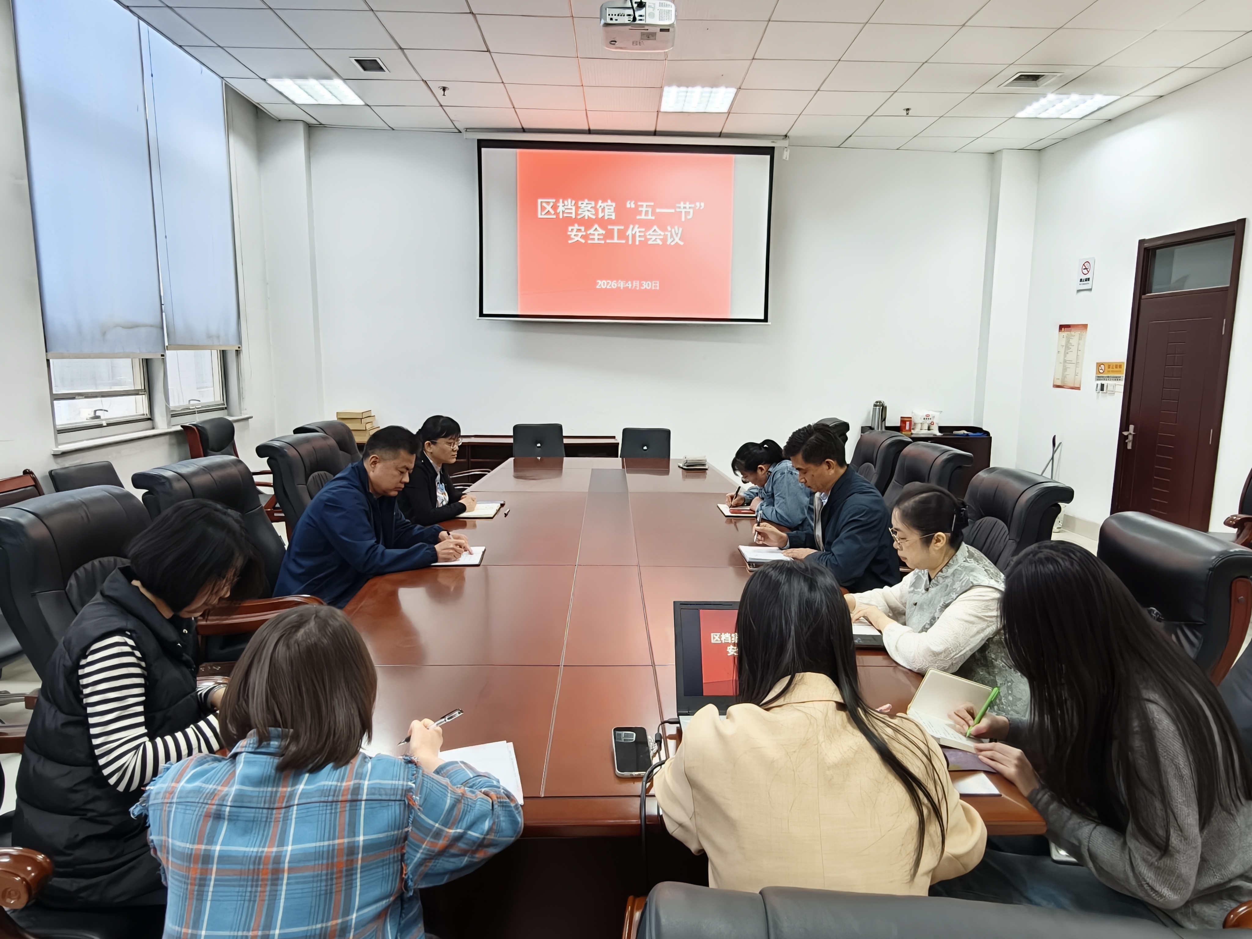 4月30日,章丘区档案馆召开节前安全工作会议。会议强调,档案安全是档案工作的生命线,消防安全更是重中之重,全体人员必须时刻绷紧安全之弦。同时,会议对节日值班工作作出专项部署,要求值班人员严格遵守值班纪律,坚守岗位、履职尽责,同时要高度重视消防安全,全面提升突发事件应急处置能力。