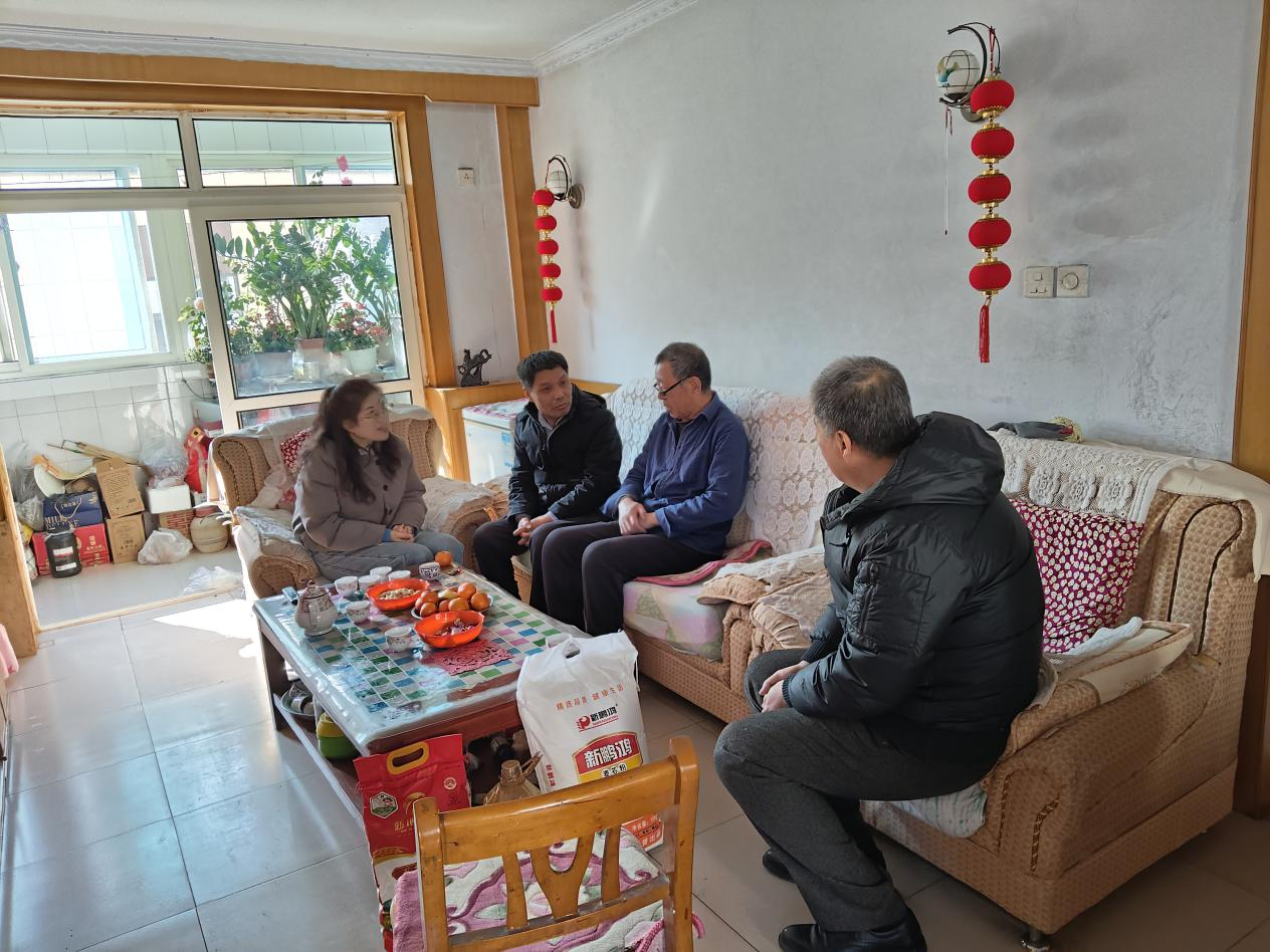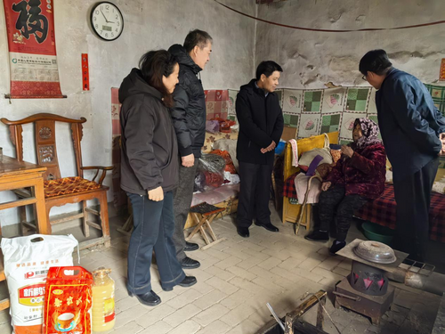随后,馆长一行前往“双联共建”艾山街道西施家峪村,在村两委干部和馆驻村“第一书记”的陪同下,深入困难村民家中,实地察看居住环境,与他们亲切交流。馆长认真倾听村民心声,了解驻村“第一书记”工作开展情况以及村庄的发展变化,勉励困难群众增强信心、战胜困难,相信在党的领导下,今后的日子会越来越好,祝福他们过上一个喜庆祥和的春节,并送去了精心准备的米、面、油等慰问物资。