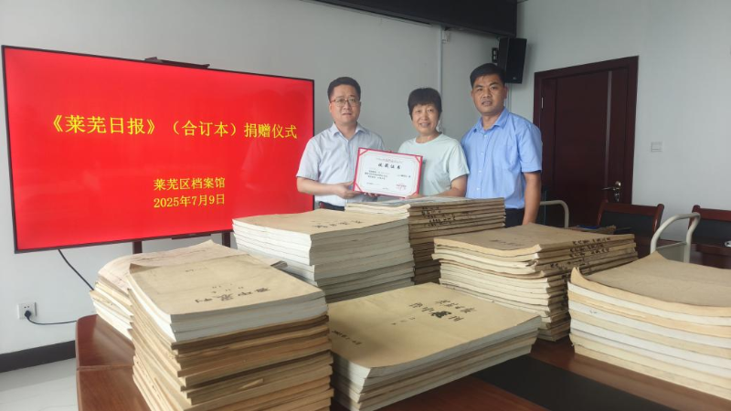 7月9日,莱芜区档案馆接收了原莱芜日报社记者万京华捐赠的《莱芜日报》《人民日报》《大众日报》等6种合订本共92本,填补了区档案馆特定年份地方报刊馆藏的空白。